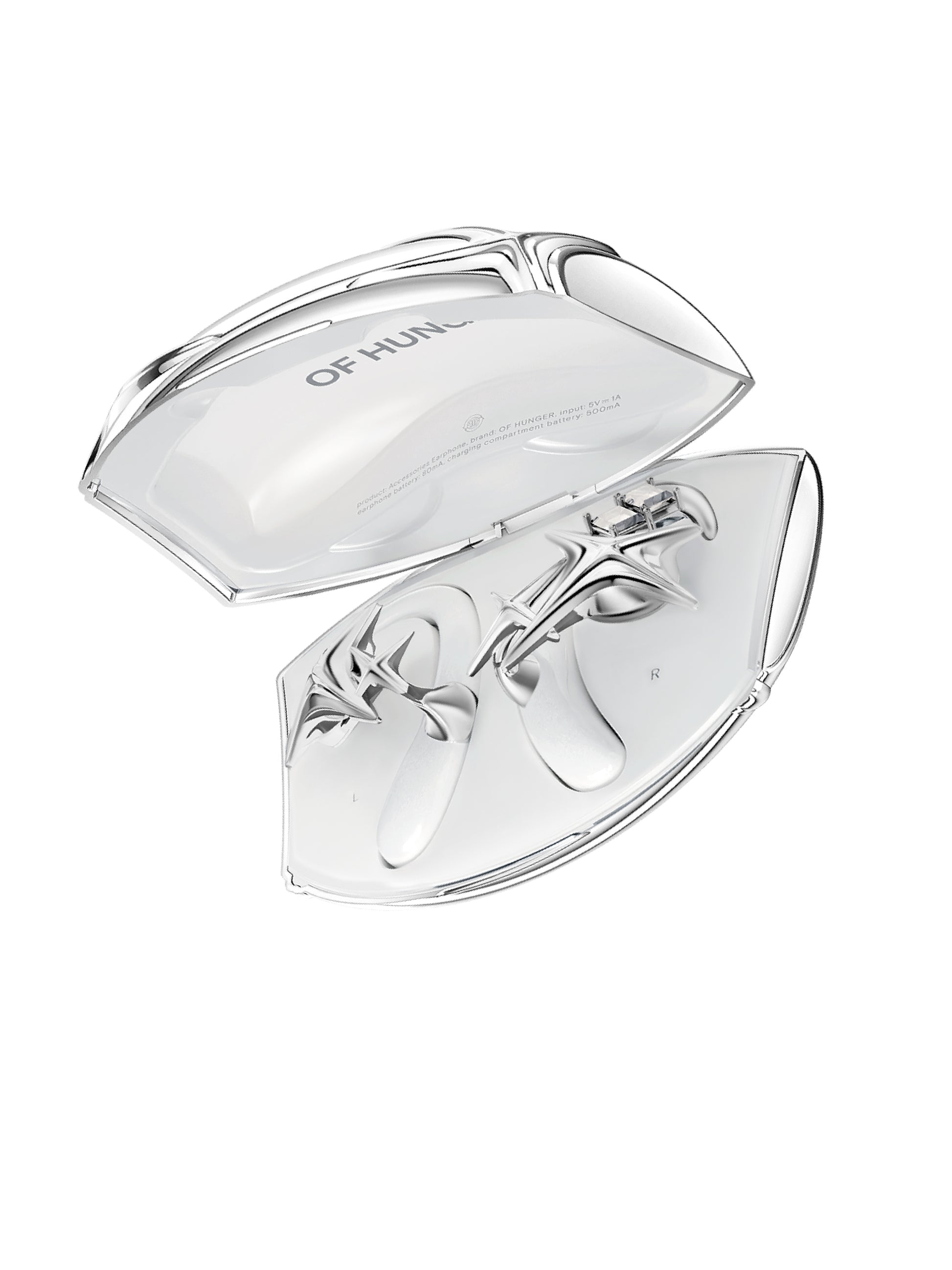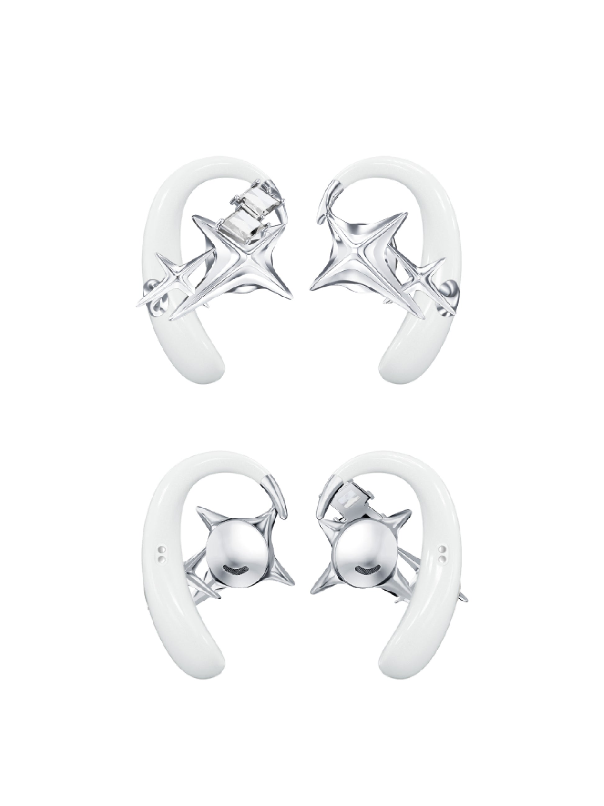 This pair of earphones features jewelry-grade craftsmanship, made with 18K white gold-plated copper, ABS, and custom zirconia.After each use, it is recommended to clean the surface with an alcohol pad to remove fingerprints, oil, stains, and sweat.Use the included silver polishing cloth for care before storing the earphones in the charging case to maintain their lasting shine.